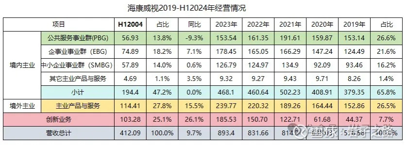 具体到海康,2021年国内主业营收502亿元,达到历史高峰,最近几年有所下滑。但究其原因主要还是ToG的下滑(我觉得主要原因还是财政紧张)。随着化债的进行,政府财务改善,以及EBG的企业场景数字化发展,国内主业2025年将会迎来环比改善。