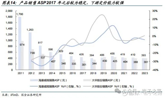 安防行业的内卷现象近年来愈演愈烈,竞争的激烈程度已经达到了前所未有的高度。摄像机已经卷到100元以下的价位,2024年4月天地伟业推出55元的PoE摄像机(被行业称为“AK55”)成为行业“卷王”。如果行业内卷,从财报上就应该表现出毛利率逐步下滑的趋势。但海康威视和大华股份的毛利率依然维持以往年份的水平(销售费率增加了几个点)。这个问题,我没有找到答案。是因为作为行业龙一龙二他们有更好的产品及服务,所以市场话语权也相对大一些,受到内卷的影响也小一些吗?还是他们市场地位强势,规模效应突出,产品价格下降的成本全部转移给了上游?(下图是历年成本和售价图)。我只能说从财务分析的角度得出这样的结论,但不管哪种情况,都说明龙一龙二的市场地位比较强。业内专业人士也请说说。