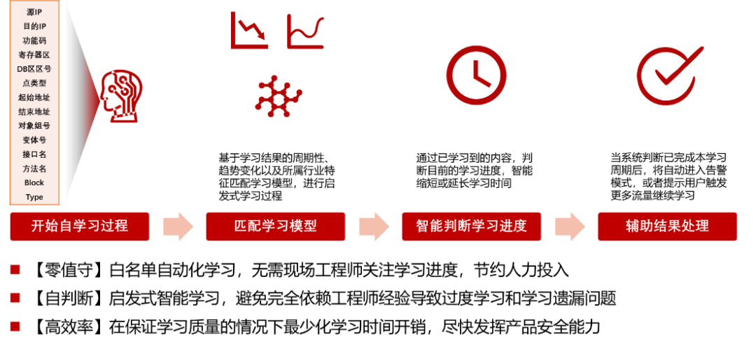 在生产管理网部署工控安全监测与审计系统,对远程监控、值班监控、工程师站等工作站下发的指令进行细粒度的审计并通过AI自学习建立起行为基线白名单,及时发现偏离基线的操作行为,采用启发式AI自学习机制,大幅提升学习效率和准确率;