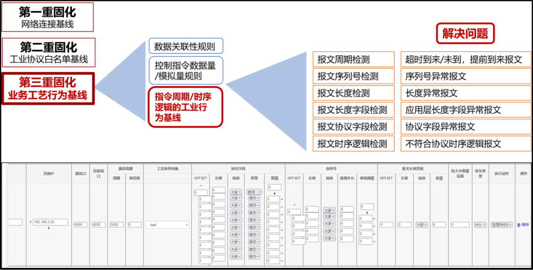 在现场编程调试PC与PLC设备之间,工程师站、操作员站与PLC设备之间分别部署工业防火墙,通过配置严格的ACL策略,只允许可信的服务通过设备;基于设备AI自学习建立起工艺流程的白名单,确保只有可信的指令才能下发至PLC设备,有效保障粮食仓储安全。