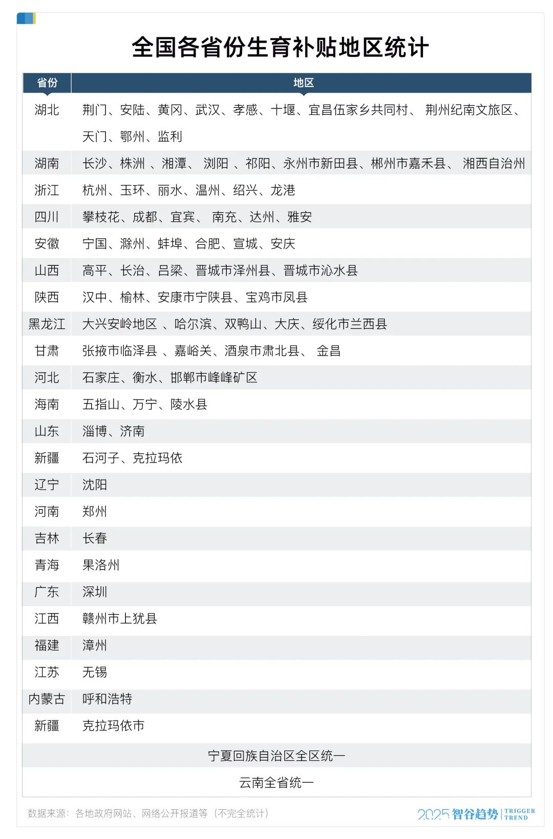 仔细梳理会发现,湖北省不仅有天门,还有相当多的城市都在鼓励生育这件事上,使出了洪荒之力。从出台生育补贴的城市数量,到补贴的力度,湖北都是全国独一档。