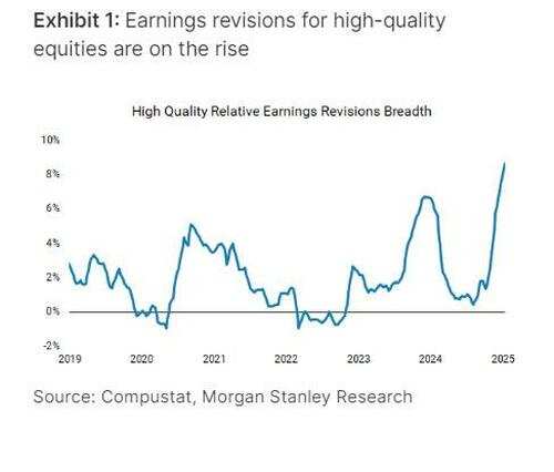 Wilson曾是知名的大空头,但从去年年底开始转向,表示对2025年美股的前景持完全看涨态度。自去年12月以来,美股的双向交易风险较此前的三个月更大,而且,高质量股票领涨、盈利预期有所改善,市场广度已经恶化。Wilson在最新的报告中指出,这些变化与长端利率上升和美元走强密切相关。