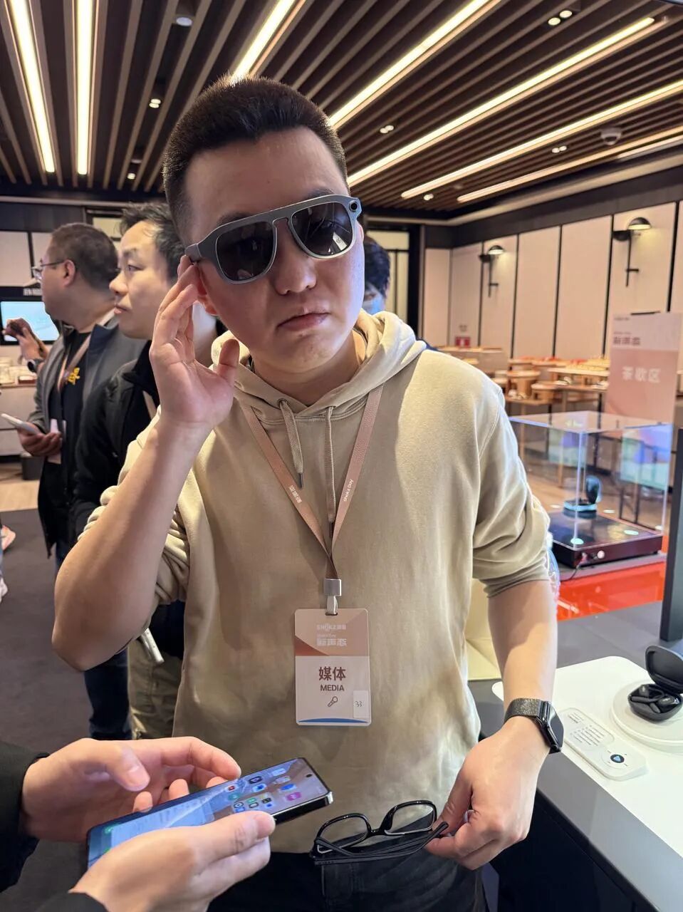 笔者现场体验韶音智能眼镜的工程样机 | 来源:极客公园