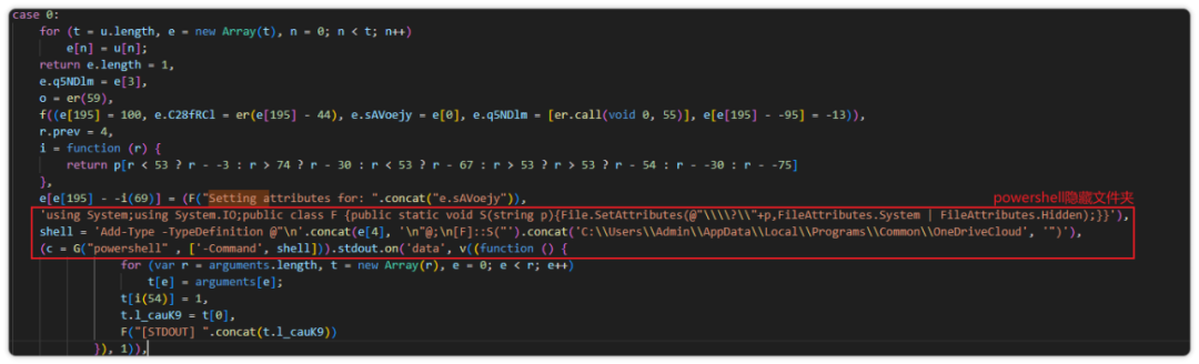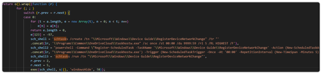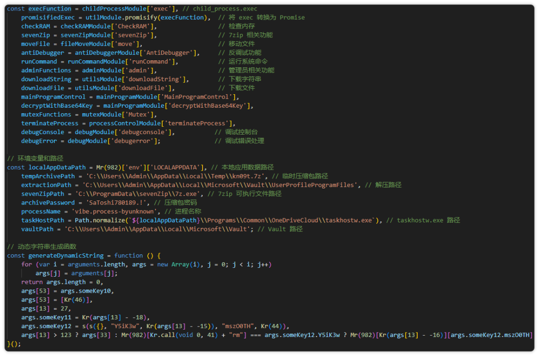 解压后得到的 Taskhostw.exe 是一个负责实现C2(命令与控制)功能的Electron程序。对其进行解包操作后,发现该样本同样采用了大量代码混淆和膨胀技术。通过解混淆分析,其核心逻辑如下。