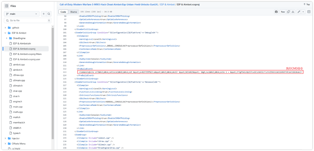 首先,病毒利用GitHub进行传播,通过Visual Studio的PreBuildEvent命令执行cmd命令。
