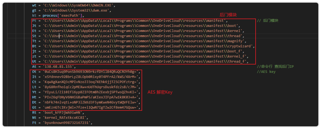 对后续后门进行分析发现,三个模块采用同样的方式对C:\\Windows\\Microsoft.NET\\Framework\\v4.0.30319\\RegAsm.exe进行注入。