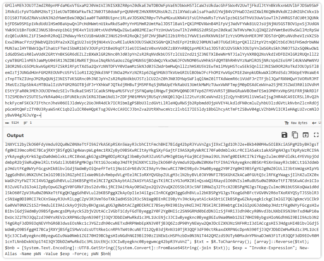 解密后的VBS脚本通过反转字符串、Base64解码等方式对混淆内容进行处理,并利用Invoke-Expression执行解码后的指令。此外,脚本通过调用pWN $bnb来运行隐藏的恶意逻辑。