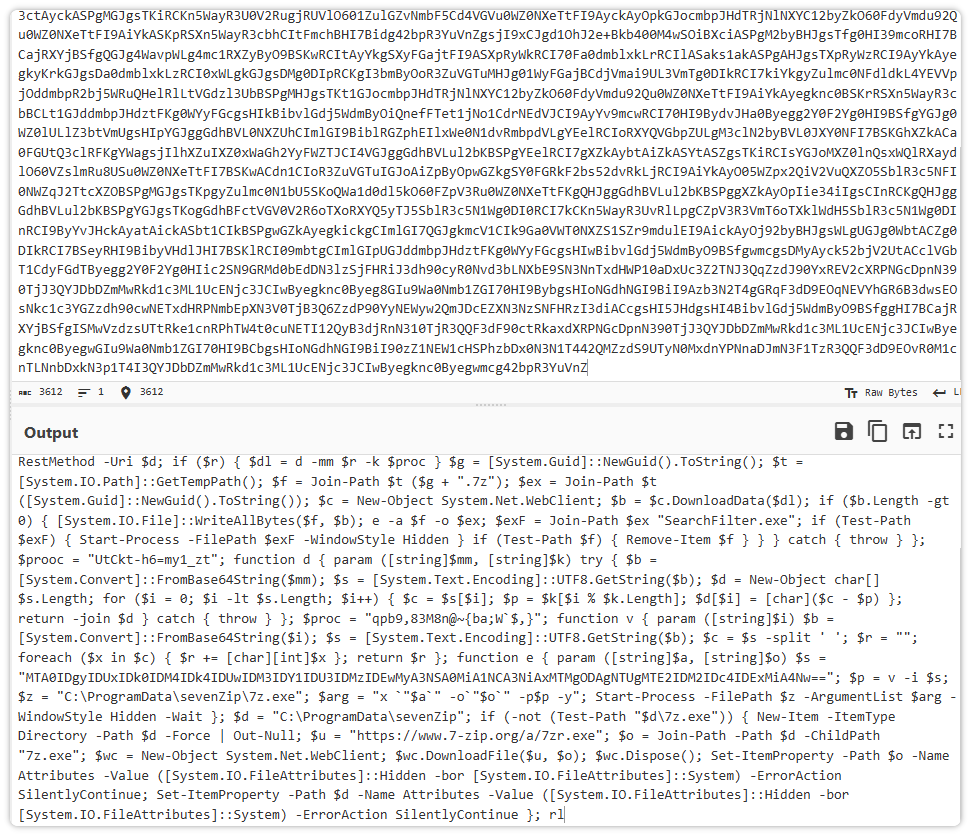下载7z解压工具:脚本从指定地址下载7z解压工具,并将其保存到C:\ProgramData\sevenZip目录中。