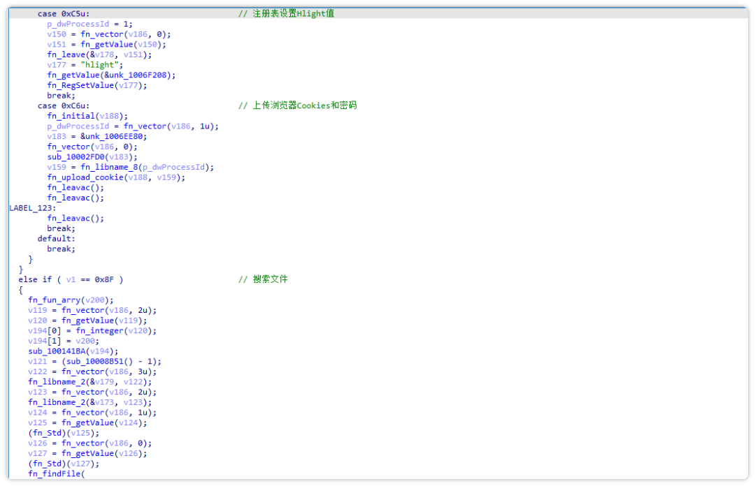 注入成功后,样本与远程C2服务器建立通信,接收攻击者指令,执行包括远程控制、数据窃取、文件操作等恶意行为。