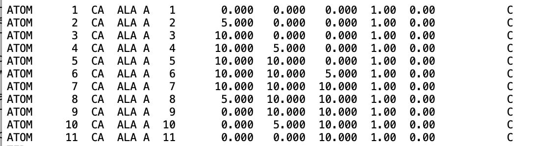 Yes. A cube. Even part of a cube is impossible. The below picture is of a 11-residue alanine-only protein partial cube that I asked o1 to create. This shape may arise accidentally — for a few femtoseconds — from a disordered protein just fumbling around, but it is always transient and never, ever stable.