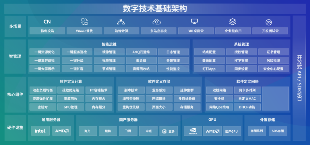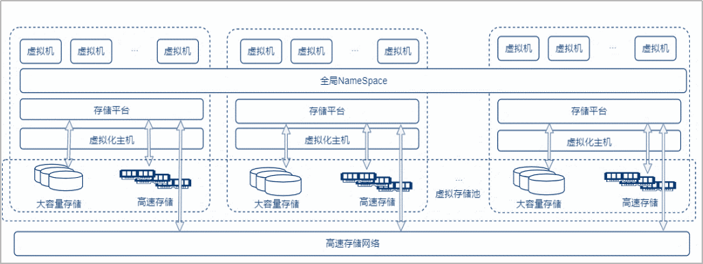 高速用户可在超融合的基础架构之上,通过软件定义的方式,提供计算虚拟化、存储虚拟化、网络虚拟化等功能和策略制定,构建出一个完整、统一的基础架构资源池。能够满足客户对服务器虚拟化、数据库、OA等一般应用基础架构的需求,同时,硬件标准化本身也可大幅降低管理复杂性,实现快速地迭代以获得更多的功能,支持最新的硬件以及充分释放硬件性能的目的。