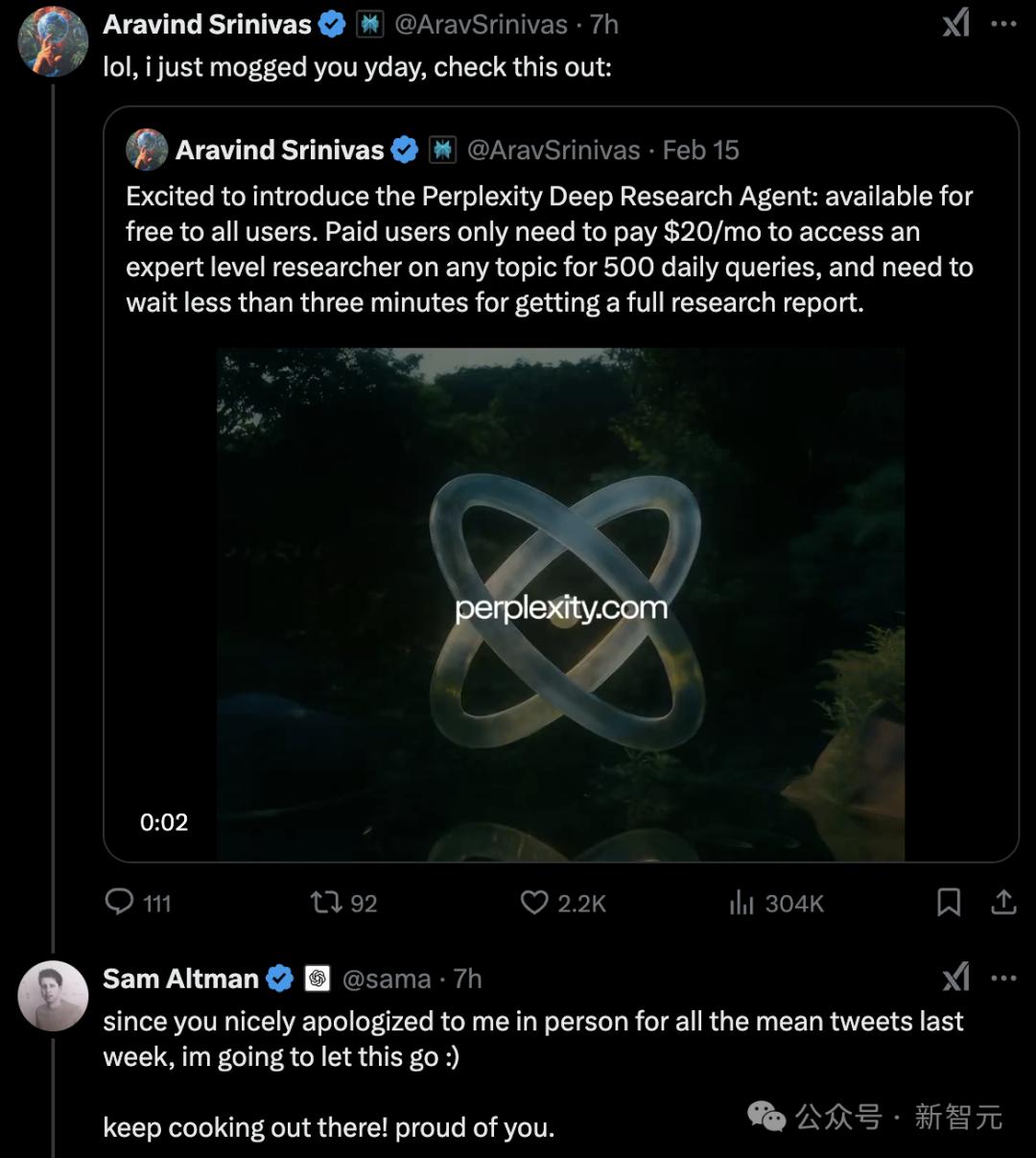 紧接着,Aravind Srinivas表示,「我昨天已经压你一头了」。