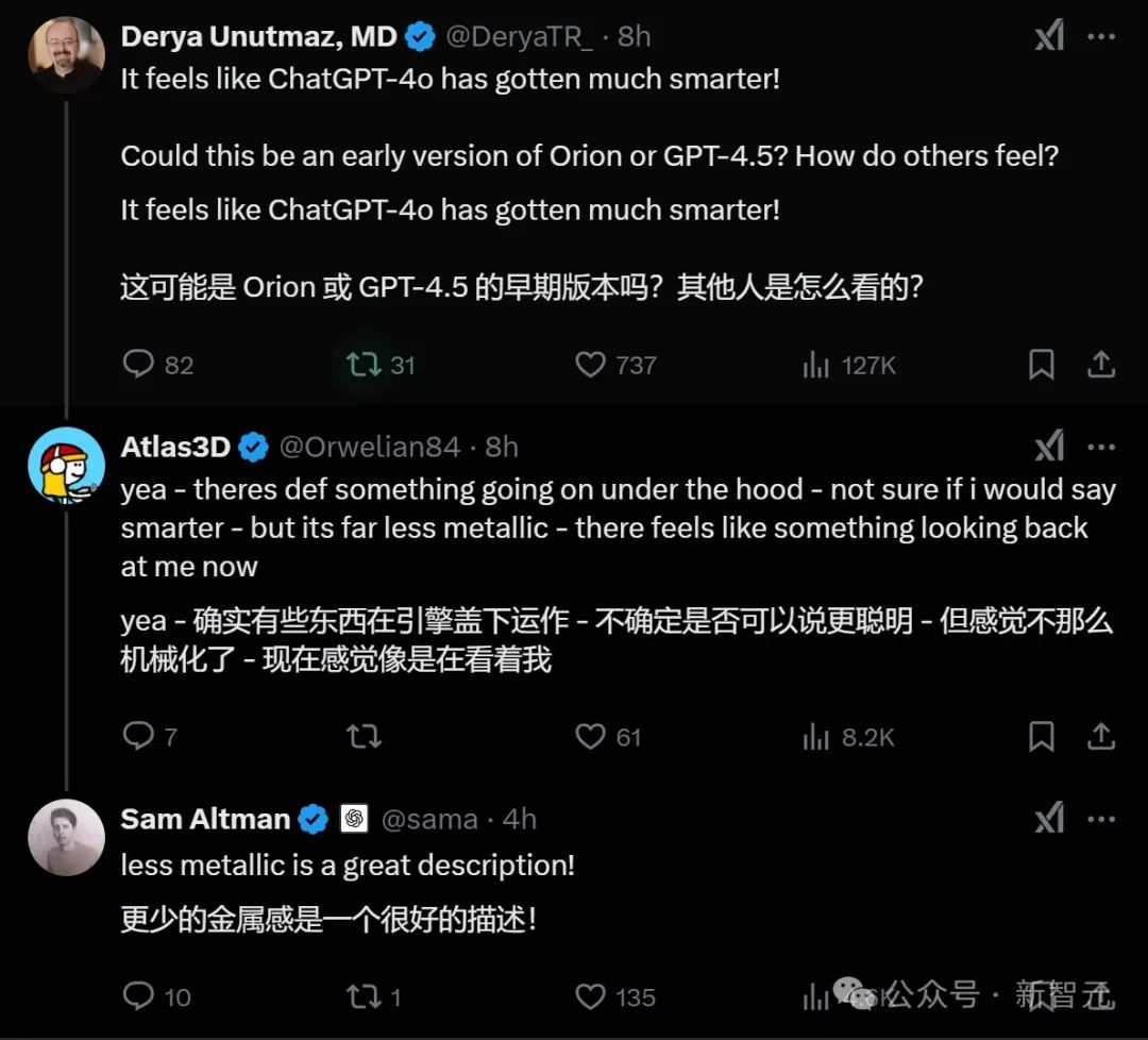 「有人注意到奥特曼的个性回复,恰好与ChatGPT聊天变得异常有趣,同时发生了吗?