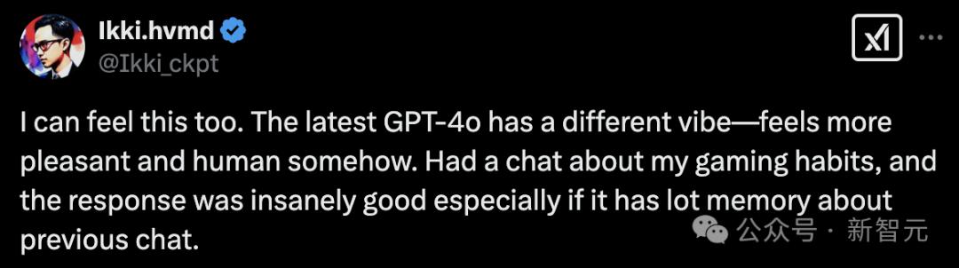 同样有一位网友表示,更新后的GPT-4o更懂自己了。他们聊了聊游戏习惯,感觉它拥有了以往对话更多的记忆。