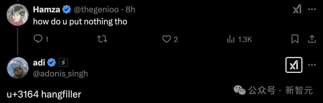 另一位网友好奇问道,你怎么能做到,什么也不发还能在ChatGPT中显示?开发者给出了秘诀——u+3164 hangfiller。
