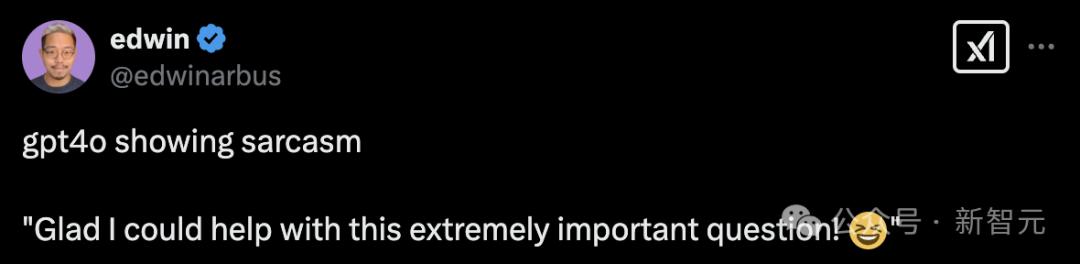 有网友发现,现在的GPT-4o还学会了讽刺——很高兴能帮你解决这个极其重要的问题!?