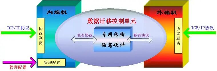 由于数据迁移控制单元使用专用的私有协议与内外端机进行通信,且其驱动程序模块也是独立编写的,在这种情况下,即使黑客试图通过代码分析洞悉安全隔离与信息交换系统一端机的接口,也无法通过控制单元攻击到另外一端机,也就无法攻击到另一端网络。