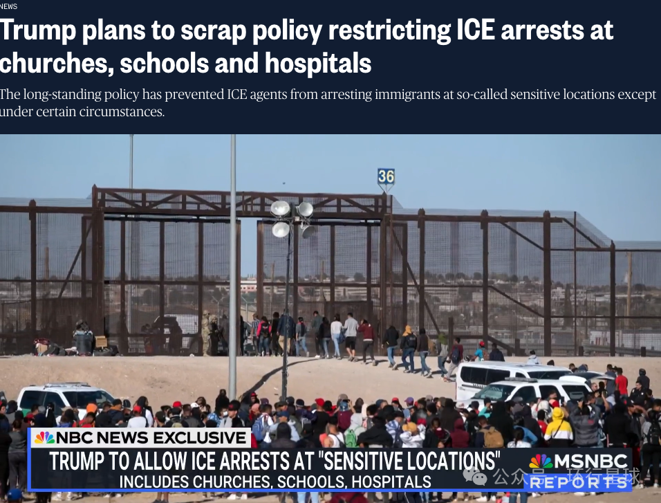 川普拟废除ICE长期政策,允许在学校、医院等敏感地点逮捕无证人员