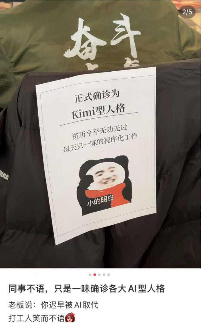 脑子活泛、业务能力强但总摸鱼的小明是“DeepSeek人格”,而那个沉默不语只是一位跑程序的小王,则荣获“Kimi人格”。