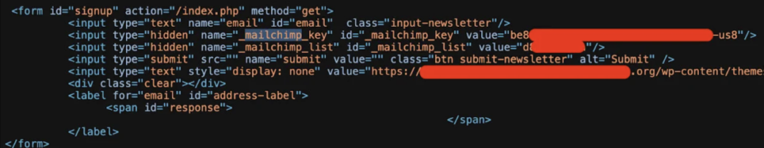 MailChimp API 密钥在前端 HTML 源代码中泄露:Truffle Security