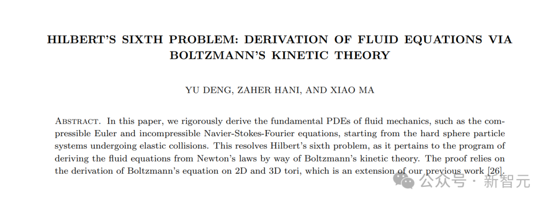 去年11月,邓煜团队使用稀薄气体硬球系统,严格推导了玻尔兹曼动力学方程,让希尔伯特第六问题的解决更近一步。