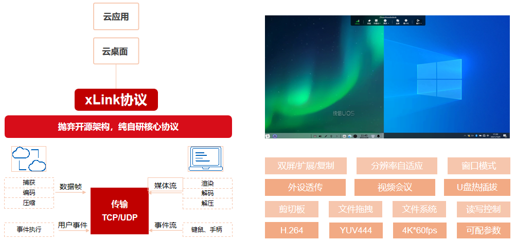 核心组件全部自研,一套协议同时支撑云桌面、云应用产品,给用户提供高效、安全、极致的使用体验;