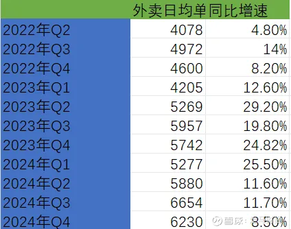 四季度外卖的单量增速已经滑落到了高个位数,大约9%,我们此前业绩前瞻中的预测确实偏乐观了,这里面可能有一定的气候因素影响,但我觉得宏观消费影响更大,另外就业市场不景气,大城市年轻人年底提前返乡,可能也会影响外卖单量表现。