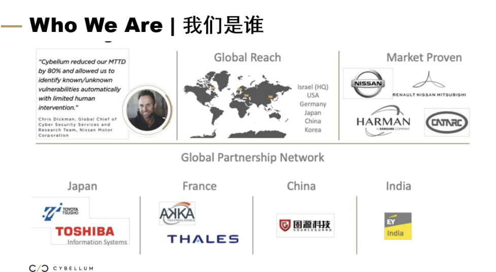 Cybellum在中国智能网联汽车行业是最大的客户市场,目前头部的检测机构、主机厂、零部件厂商都有在使用它,在相关车型通过VTA认证、强标检测、日常的安全测试和整车及零部件的渗透测试中都能见到它的报告。
