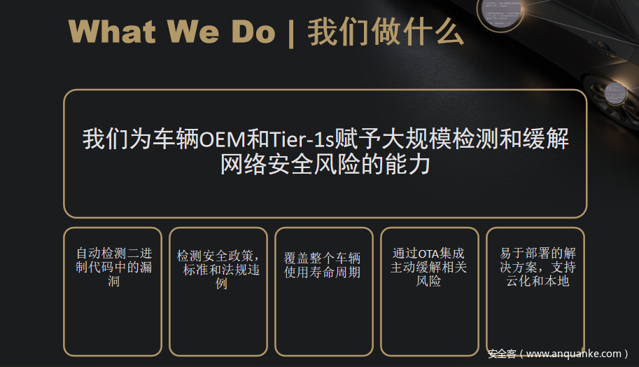 总结一段话:Cybellum可以自动对固件二进制包做逆向分析,不需要供应商提供源代码的情况下主机厂和测评机构就可以识别出SBOM清单并且对他们做安全漏洞评估与风险管理。