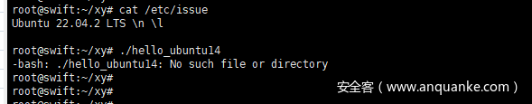 库依赖问题导致二进制在 Ubuntu 14.04 下可以执行,但在 Ubuntu 22.04 下不能执行。