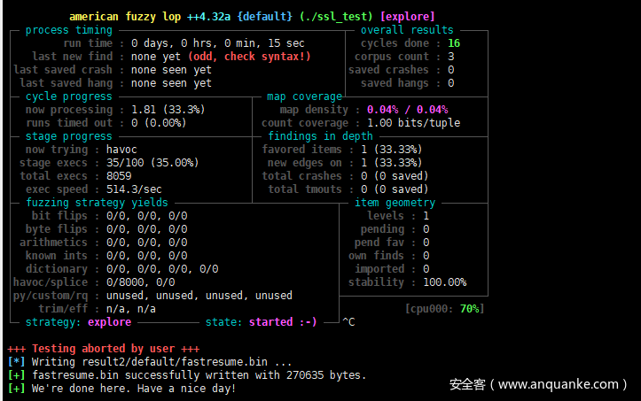 解析:源代码编译在线下载大文件数据包,不够稳定;包管理其安装 afl++ 只是一个基础包,无法进行模糊测试,仍需安装其它依赖包;
