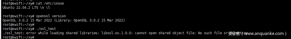 共享库缺失问题:libssl.so.1.0.0 在Ubuntu 22.04中不存在,因为OpenSSL的版本已经更新。