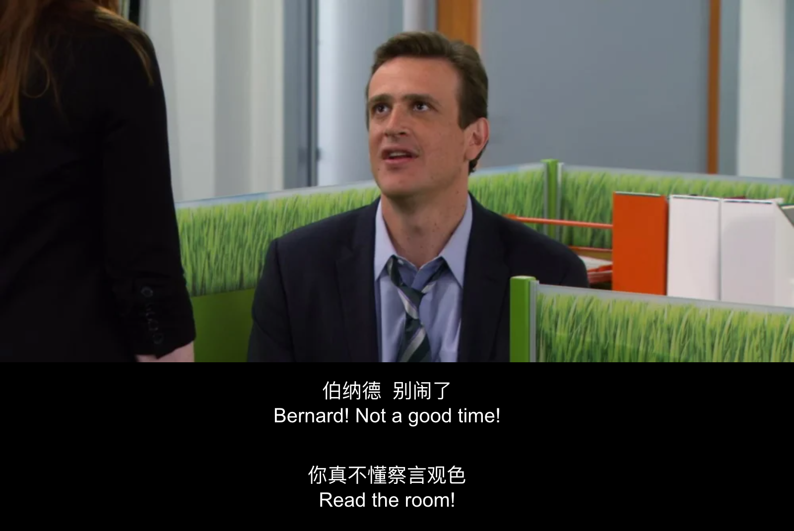 👉room在这里不是“房间”,而是指“某个场合或群体的整体氛围”,read the room意思是“察言观色,解读现场气氛”。