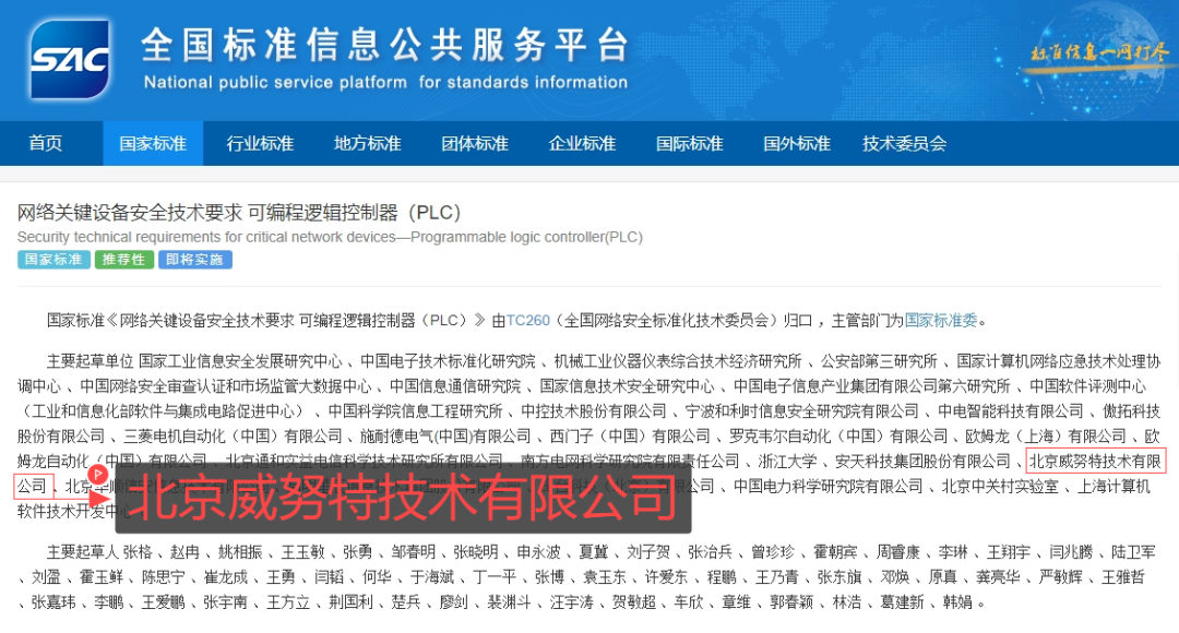 作为工业自动化领域的核心控制设备,可编程逻辑控制器(PLC)的安全性直接关系到国家关键基础设施的稳定运行。近日,由全国网络安全标准化技术委员会(TC260)归口的国家标准——GB/T 45406-2025《网络关键设备安全技术要求 可编程逻辑控制器(PLC)》(以下简称“标准”)正式发布,威努特作为工业控制网络安全领域的领军企业,应邀参与到该标准的编写工作中,凭借全栈自主可控的技术积累,在标准制定中发挥了关键作用。
