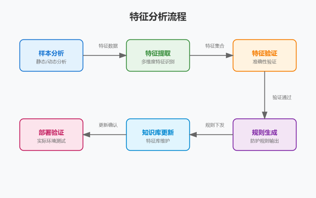 自动化采集分析系统的核心价值,在于帮助我们持续获取和分析最新的勒索病毒样本,不断优化行为分析模型。通过对大量真实攻击数据的深度分析,我们得以准确识别勒索病毒的行为特征,从而构建起以行为分析为核心的防护体系。这个体系以机器学习驱动的行为分析引擎为核心,能够准确识别未知变种的勒索行为;同时配合特征识别模块作为辅助,实现对已知威胁的快速拦截。