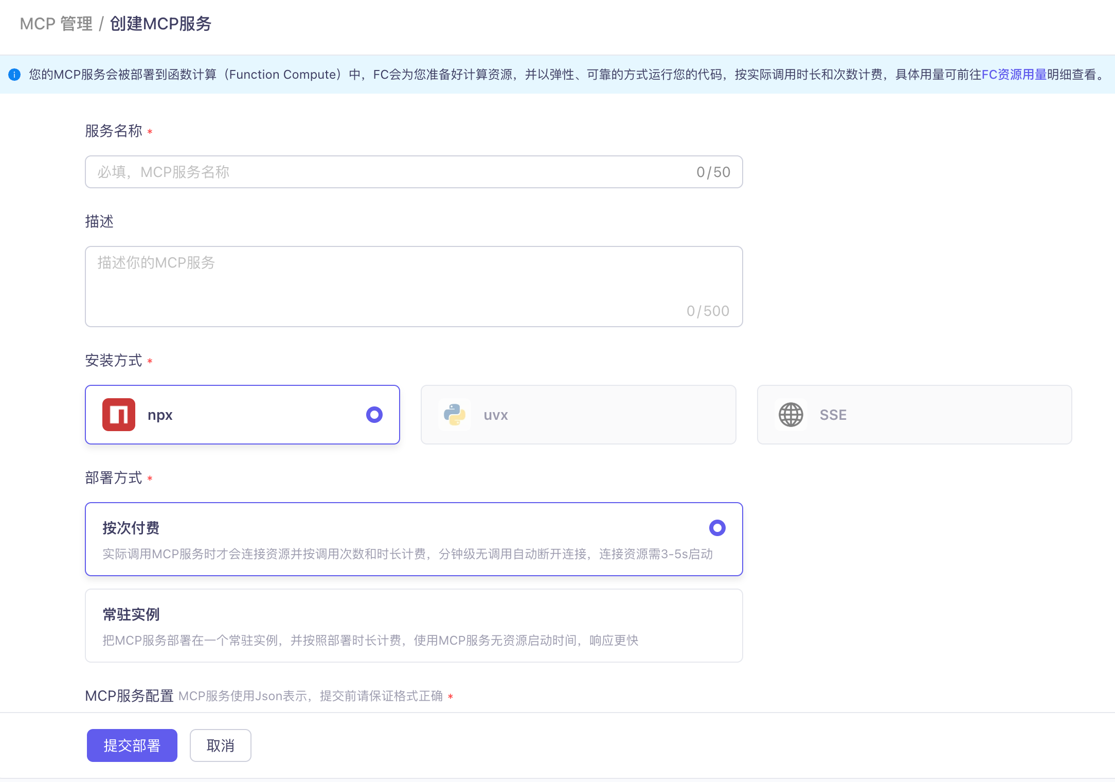 服务由百炼托管在函数计算上,调用即加载、通过 API 按量计费。