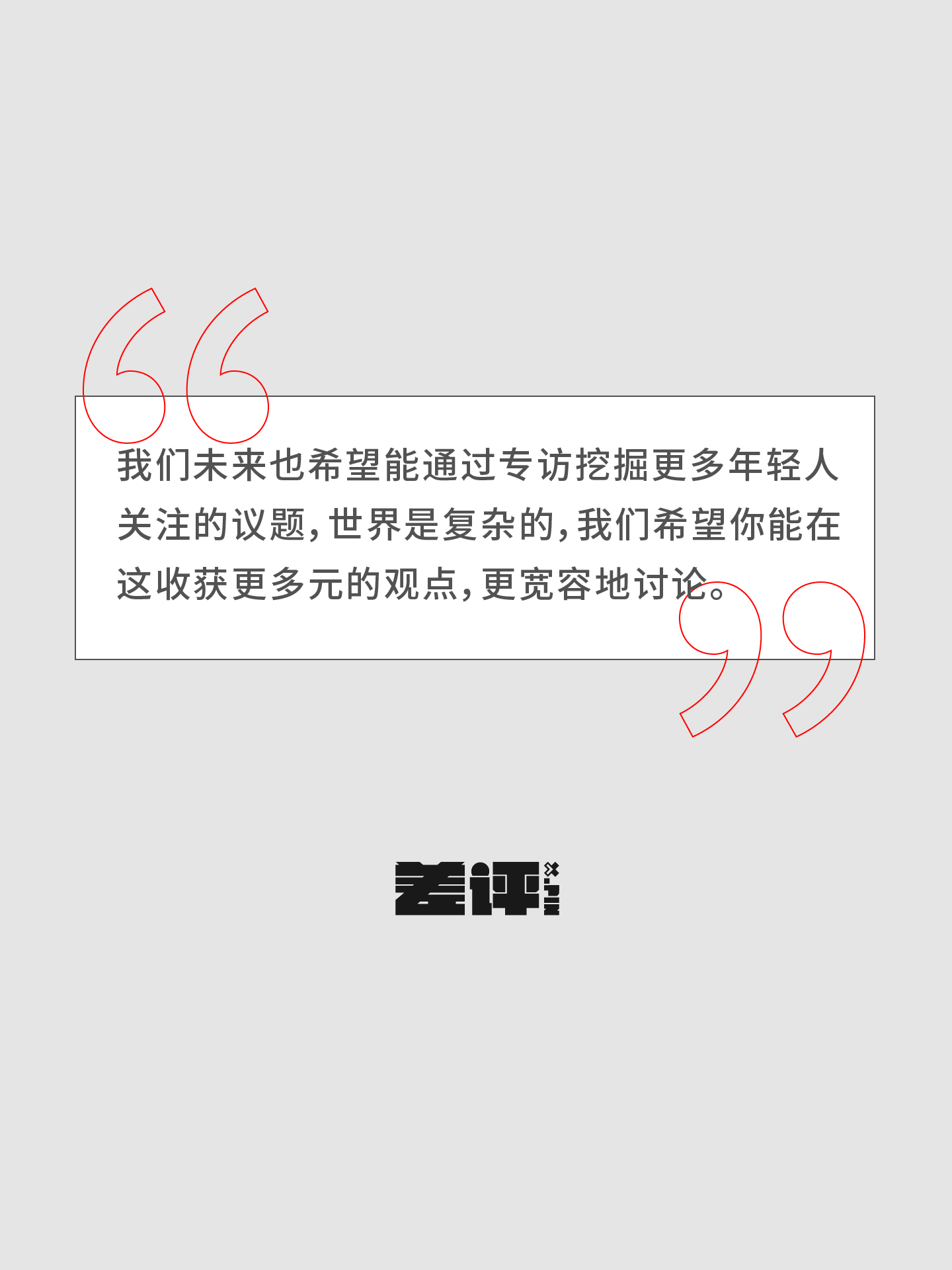 我们未来也希望能通过专访挖掘更多年轻人关注的议题,世界是复杂的,我们希望你能在这收获更多元的观点,更宽容的讨论。