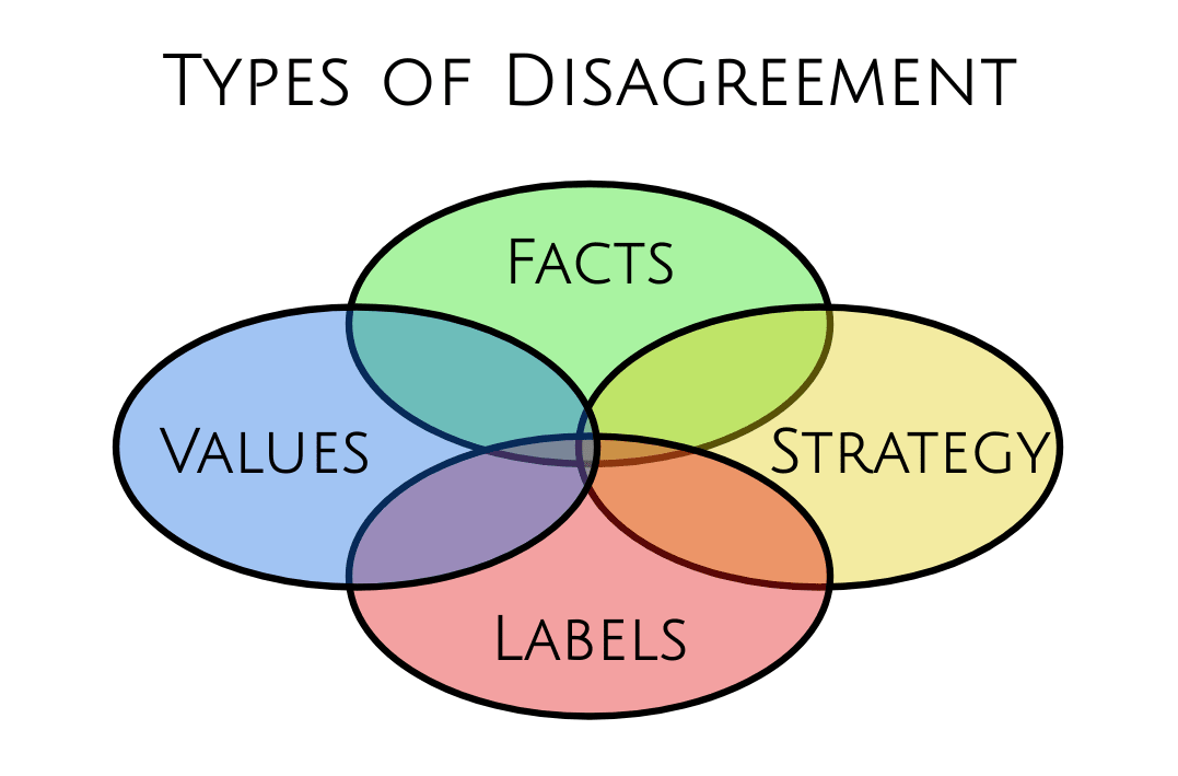 Understanding which type of disagreement you're having is crucial because each type requires a different resolution approach. Trying to resolve a values disagreement with more facts is often futile; likewise, arguing about labels often leads nowhere.