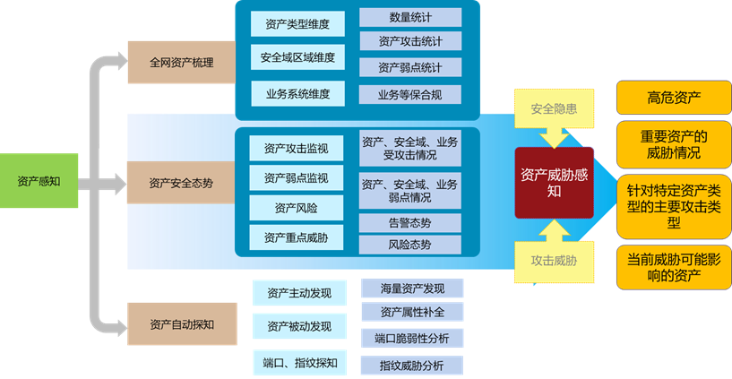 对用户网内资产的识别和梳理是态势感知的关键和基础,因为对安全态势的感知和防护是围绕着资产进行了,目标是降低用户资产的风险态势。