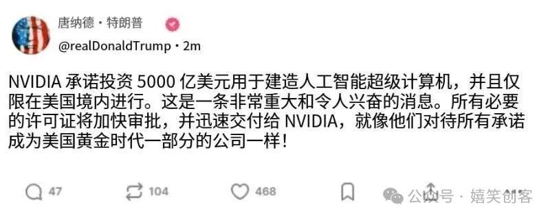 周一英伟达刚刚承诺了5000亿美金的大规模投资后,周二就被美国政府限制了H20的出口,无限期要求许可证。