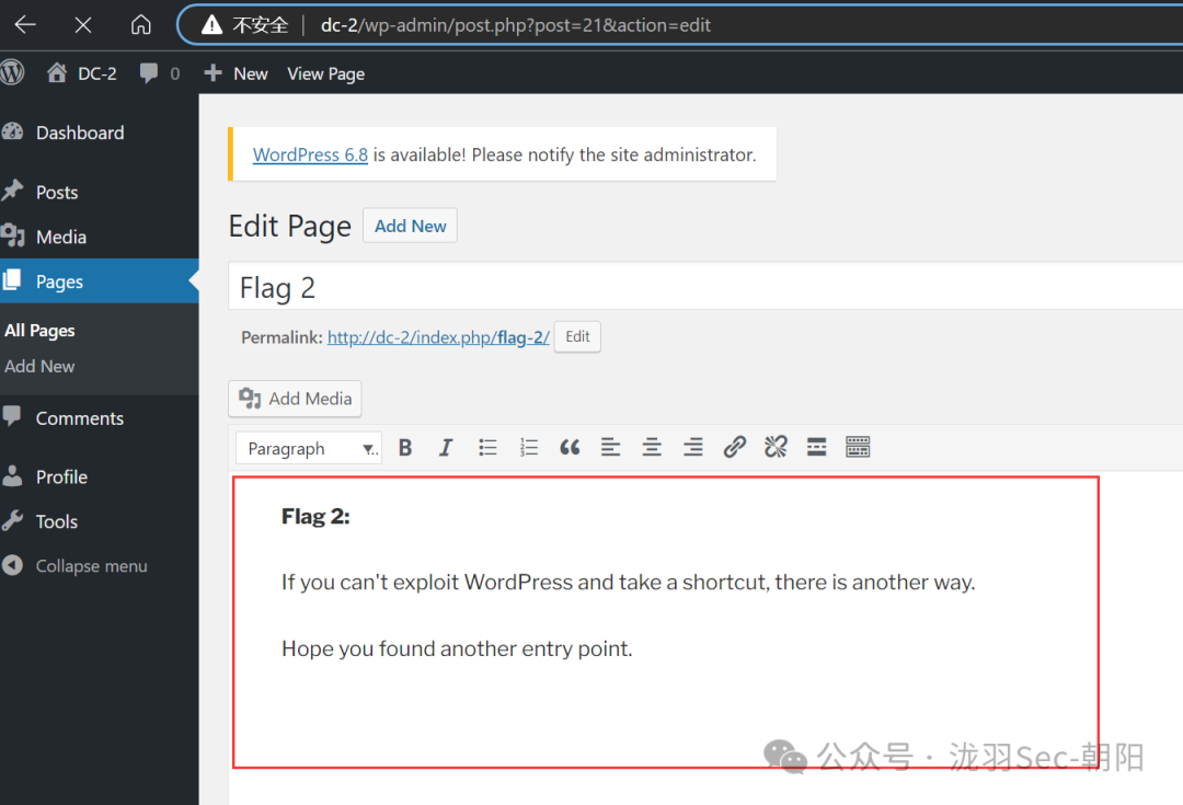 这是我们扫描出来的目录,访问去看看如果访问重定向报错记得在/etc/hosts中添加ip即可,在windows中的C:/Windows/System32/drivers/etc/HOSTS中添加ip dc-2即可成功