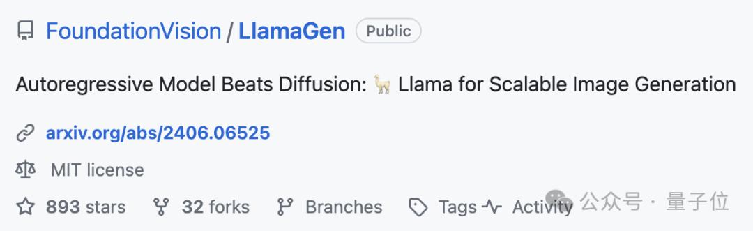 GitHub:https://github.com/FoundationVision/LlamaGen