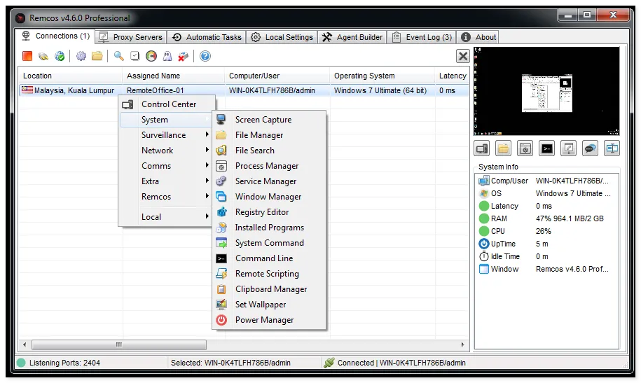 Remcos 是一个成熟的远控后门,目前已更新到 4.9.4,是一个商业化的木马,与 cobalt strike 相似,能完全控制受害者机器: