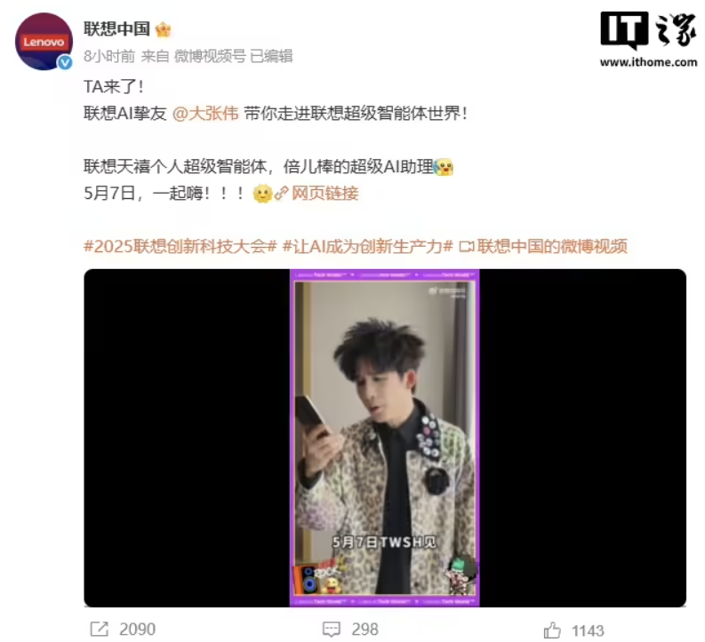 大张伟成「联想 AI 挚友」,预告天禧个人超级智能体