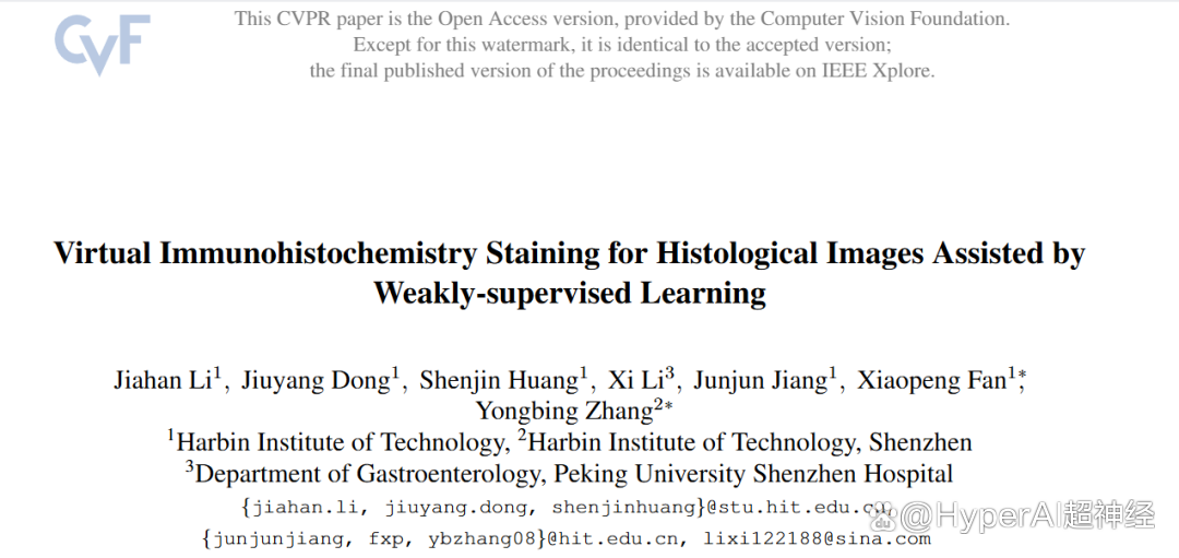 去年,CVPR 2024 就收录了一篇题为「Virtual Immunohistochemistry Staining for Histological Images Assisted by Weakly-supervised Learning」的研究,文章提到了一种名为 confusion-GAN 的弱监督学习方法,用于虚拟免疫组织化学 (virtual immunohistochemistr, IHC) 染色,能将 H&E 图像转换为 IHC 图像,解决了传统方法在 IHC 染色上繁琐昂贵的代价。