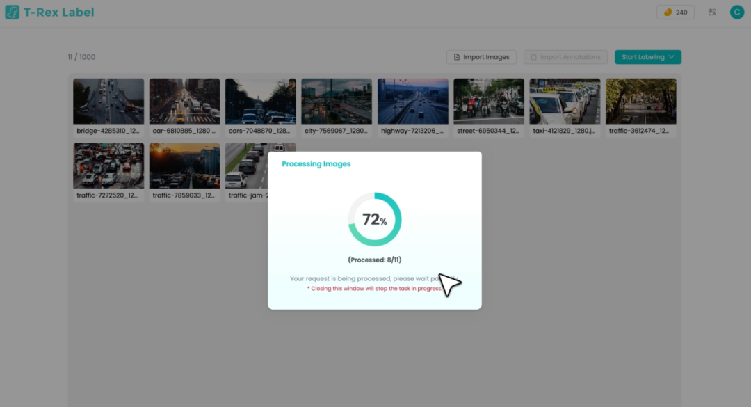 为了进一步拓展 AI 标注的能力边界,T-Rex Label 在已有 T-Rex2 智能标注的基础上,正式上线 DINO-X 预标注功能,这意味着用户只需选择图片、定义需要标注的类别,即可一键批量自动标注。而且,T-Rex Label 可以在线标注,无需处理复杂的安装部署、文件配置等问题。