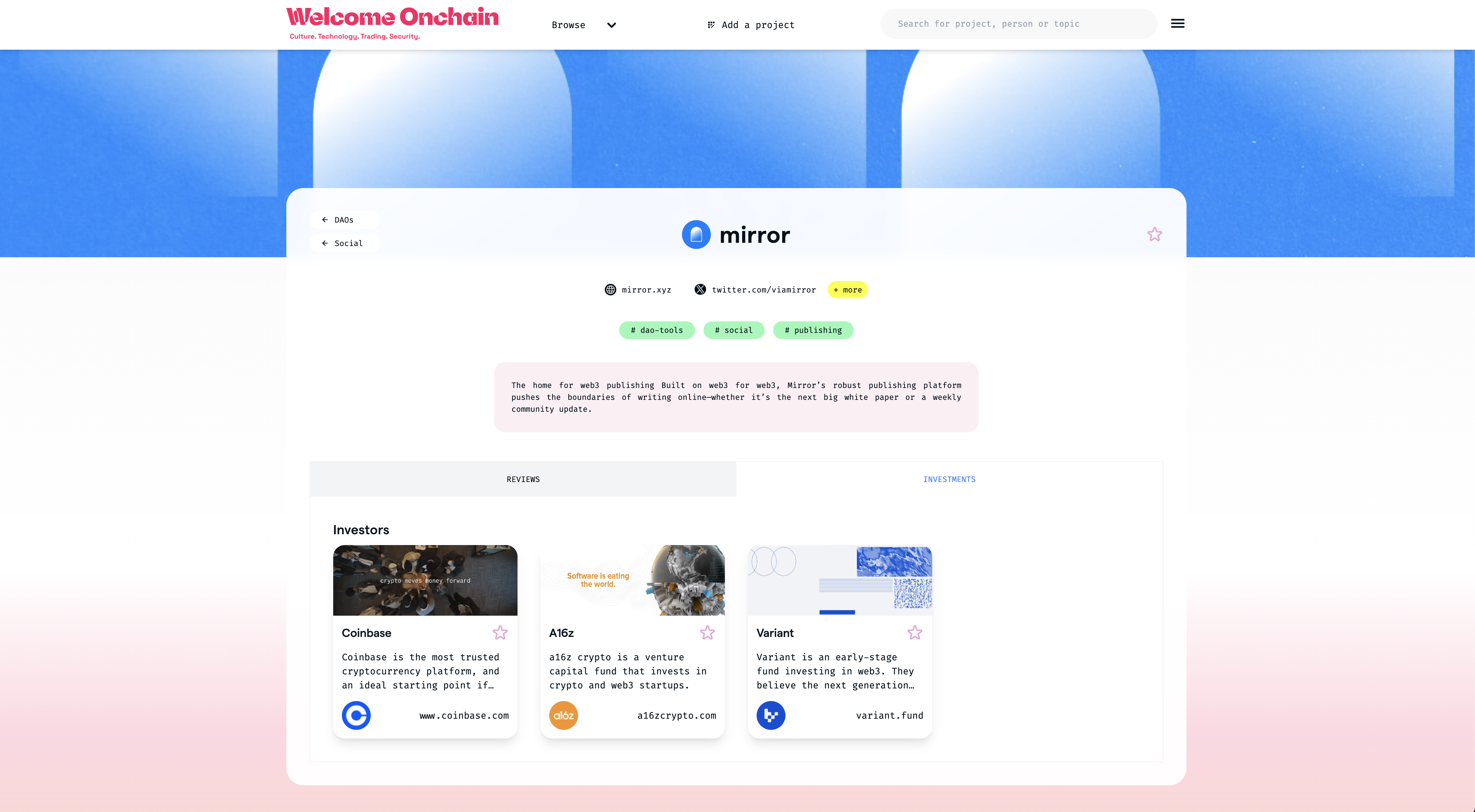 Crypto and onchain discovery and education platform for DeFi, NFTs, Social, DAOs, and more. Helping you find project info – covering yield, audits, integrations, governance, treasuries, team members, jobs, grants and bounties.