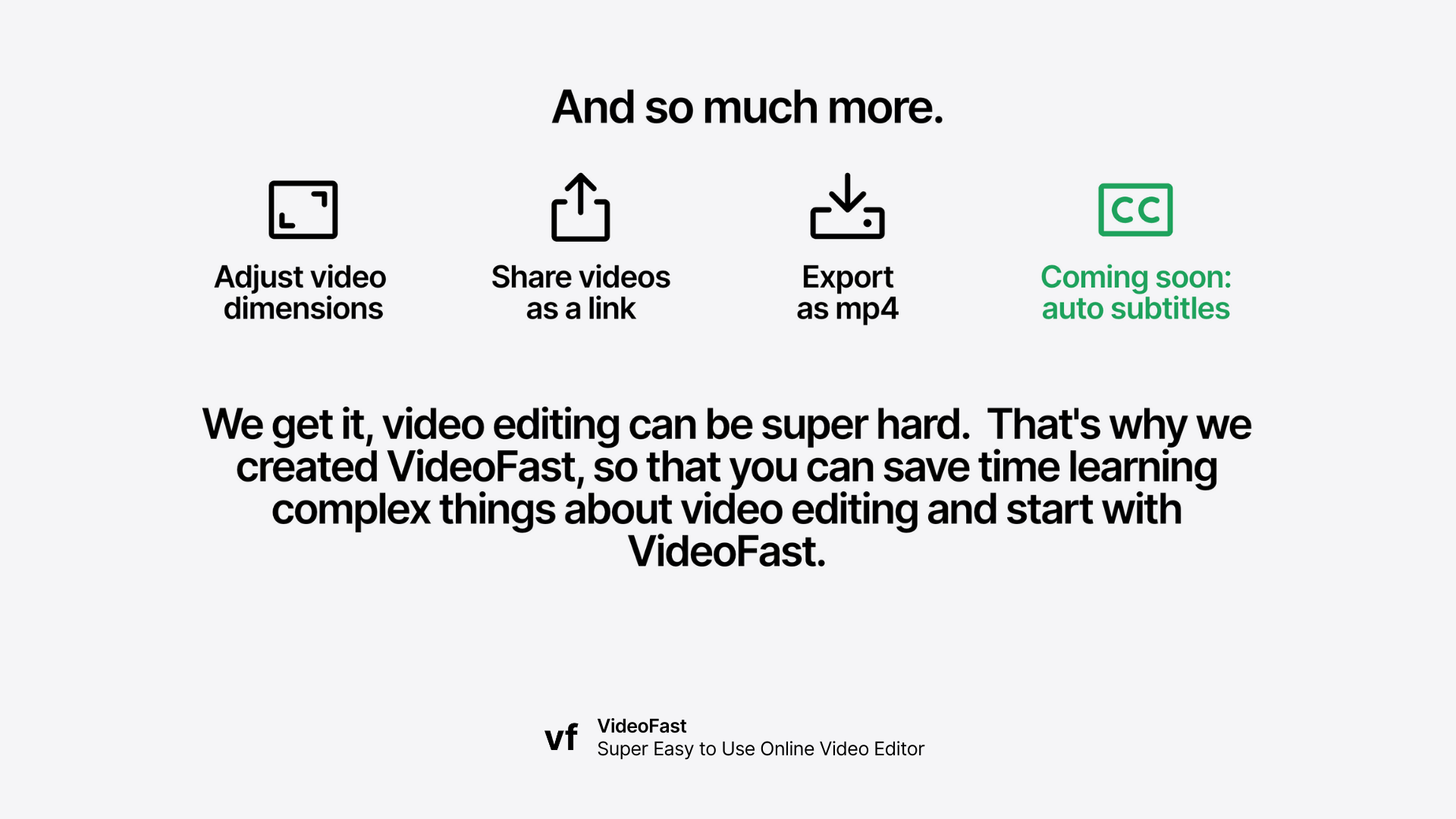 VideoFast is the easiest way to create and edit high-quality videos. It works by allowing you to choose from a list of beautifully crafted text, media, and shape animations and customizing them into how you want your video to be.