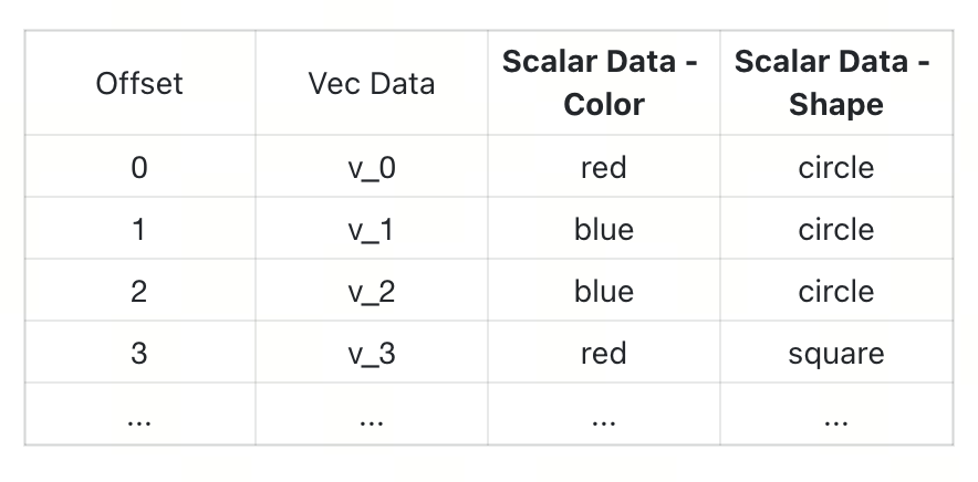例如,如果两个标量列分别描述颜色和形状,你可以基于每个不同取值构建对应的子图(subgraph)。当过滤条件命中某个子图区域时,可以在该子图中执行搜索,从而加快查询速度。